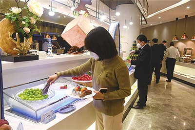 凭借“绿色、生态、健康、优质”的品质保证,“莱西有礼”地方特色产品继2022年进入青岛“两会”餐桌后,如今再次摆上青岛2023年“两会”餐桌。“莱西水集的阳光玫瑰葡萄就是好吃,肉硬皮薄,果肉甜度高,甜香味浓。”在水果区,一位参会的青岛人大代表一边拿取葡萄,一边赞不绝口地说。