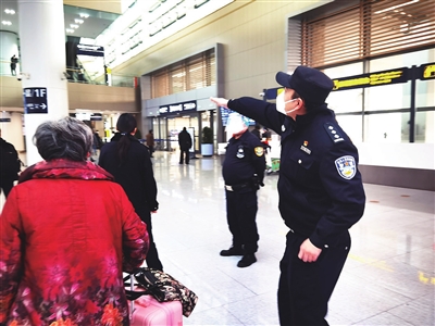 航站楼派出所夜班民警吴浩正和段阳在巡逻时,特别关注那些睡在过夜区域的旅客。“要看好随身物品!”民警一边巡逻,一边提醒群众。凌晨0时12分,综合交通中心派出所民警李海涛在通往地铁站的直梯口附近发现,这里的过夜区域长凳上坐着40多名旅客,许多旅客在玩手机,随手把行李放在地下。“记住你拿着几个包,离开的时候,别忘了清点一下!”李海涛提醒大家。