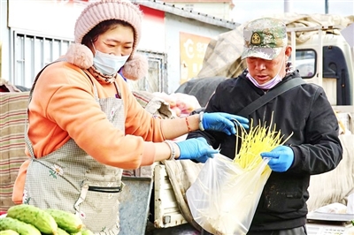 90后陈晓晓是大集摊主的“年轻一代”。小时候,她随父母来赶集,大集承载了童年的回忆;长大后,父母帮她在大集上售卖,大集承载了亲情的陪伴。“今天带来近千斤蔬菜,品种很多,早上四点多我就过来了,卸车、出架子,7点左右,人开始多了起来。平时母亲经常来帮我,年底忙,父亲也一块来了。这些蔬菜有我们自己地里种的,也有从市场上进的货。”陈晓晓来大集摆摊六七年了,家中地里种着樱桃、杏、桃子、草莓等果树和一些蔬菜。