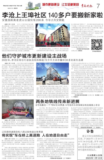 青岛晚报城市更新建设,让生活更美好A07李沧上王埠社区140多户要搬新家啦 2023-01-12 2 2023年01月12日 星期四