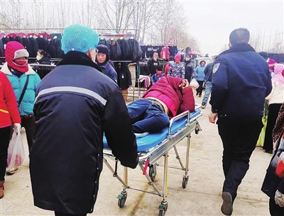 本报1月16日讯 12日上午10时许,莱西市公安局马连庄派出所民警在马连庄集市上巡逻时,有群众上前求助,称一名女子倒在集市中间。因为赶集的人太多,救护车无法靠近现场。民警立即赶到100米外的事发地点,一边大声叫喊疏导赶集群众,一边配合医护人员推着担架车快速前行。赶集的群众听到喊声后纷纷让开道路,开辟出一条“绿色通道”,患病群众很快被抬到担架车上,送上了救护车。