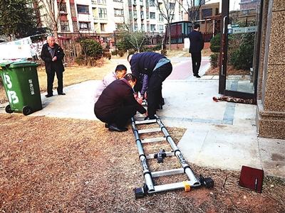 “我家里当时搞装修,买了个可以伸开的A型梯子。”王宏赶紧跑回家取梯子,当他扛着梯子到场时,物业工作人员也找来一个梯子,准备架到二楼,可这个梯子不够高。王宏立刻把自家梯子递过去,铺在地上,大家用力一拉,梯子展开了。“当时梯子不够高,我们往地上铺了个塑料桶,垫在底部。”小区居民宋玉文当时也参与了救人,他告诉记者,自己也是小区物业的员工,平时经常参与消防演练。宋玉文和几名热心人扶住梯子,就在这时,一名小伙主动爬到梯子的最高处,让男孩翻出窗台,随后扶着他的腿,让他慢慢踩在梯子上,爬到了安全地带;随后,这名小伙又用同样的办法,把女孩救了出来。