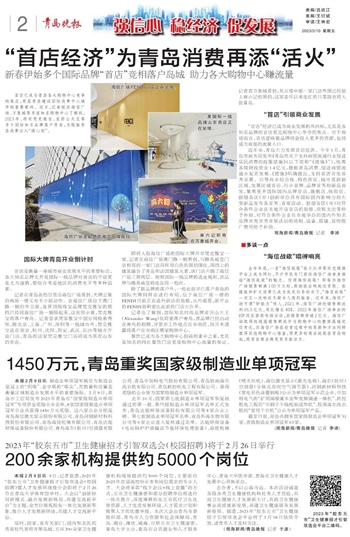 首店已成为青岛各大购物中心竞争的焦点,更是青岛建设国际消费中心城市的重要筹码。近日,记者探访海信广场、万象城等多家知名购物中心了解到,2023年,将有梵克雅宝、亚历山大王等多个国际知名品牌落户青岛,为提振青岛消费注入“强心剂”。