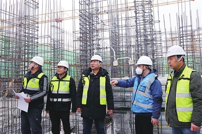 12日上午,记者来到位于崂山区辽阳东路附近的张村河南安置区项目建设现场,工人们火热施工的同时,一群戴着各色安全帽的人员,也在现场忙碌着。他们是由住建、监理和建设等部门组成的联合质量监督小组。成员中,头戴业主名称安全帽的辛良瑞引起了记者注意。只见他拿着卷尺,仔细测量着钢筋的尺寸。“没问题,质量杠杠的!”辛良瑞边说边竖起大拇指。顾不上辛苦,结束后辛良瑞又和检查组成员一起,在施工现场检查了起来。