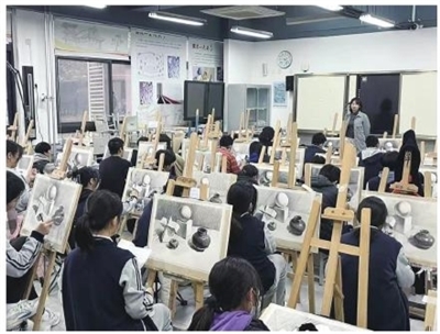 “唰,唰……”城阳一处艺考生集训基地内,笔尖划过纸张的声响在教室里此起彼伏,青岛十七中美术考生毛怡琳正跟其他同学一起埋头练习速写。“画得太慢了,要加快速度!”“画面关系要调整一下……”美术老师在教室里来回走动,查看每名学生的绘画情况,并给予及时纠正。