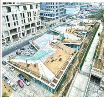 从空中俯瞰,青岛市政中央商务区地下停车场已经成为一道亮丽风景线。与以往的方正造型停车场不同,青岛市政中央商务区停车场设计结合了中央商务区规划发展理念,借鉴了纽约高线公园“线型空中花园”理念,在地上营造出一个波浪型公共空间。楼下是停车场,楼上是街心花园,青岛市政中央商务区地下停车场给人的最大感觉是满满的新意。