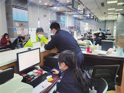 毕世文在前台忙前忙后时,后台也有人在忙碌:每天受理的100多份资料,民警姜翠芹都要逐一仔细审核再上传。盯着屏幕久了,姜翠芹的眼睛干涩、视线模糊。这几天因为业务量激增,加班成了常态,姜翠芹的身体也受到了考验。“我的丈夫也是警察,工作也很忙,孩子今年还要参加高考。”姜翠芹称,虽然一直牵挂家人,但只要坐在了电脑前,她会全神贯注地投入工作。
