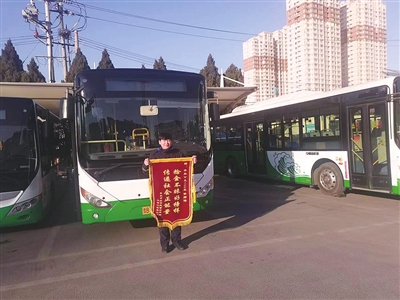 本报2月22日讯 22日上午,位于永吉路的公交崂山公司停车场内,一个特殊标记的快递包裹引起了工作人员注意。“收件人的信息是4路驾驶员,没有具体姓名和车号。”工作人员将快递交到了公交崂山五分公司党支部书记郭元荣手中。郭元荣打开包裹发现,里面竟是一面锦旗。“拾金不昧好榜样 传递社会正能量”,锦旗上清楚地写着送给1133车黄师傅,郭元荣看到后向驾驶该车的黄振东询问情况。黄振东想起来,前几日帮一位女士保存了其遗忘在车上的背包,当时乘客说要送锦旗。原来,19日上午,黄振东驾驶1133路车,途经海慈医院附近时,车上乘客大声提醒有人遗忘了背包,黄振东听到后,再三确认也没人认领,于是将背包捡起来妥善保管,准备带回公司寻找失主。