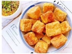 如果吃腻了家常烧豆腐,不妨用空气炸锅试一道简单方便快捷的炸豆腐,原材料也很简单,需要用到一块利群福兴卤水老豆腐。它是纯卤水(氯化镁)点制的,卤水点的老豆腐口感绵韧,比较硬,有豆香味,含水量少、色泽白中略偏黄,质地比较粗老,比较适合做煎豆腐、炸豆腐等美食。
