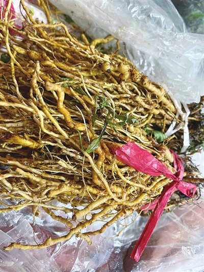 面条菜从冬天就出现在农贸市场,但那时候是大棚产的,而现在野地里的新鲜面条菜逐渐上市,更有一股鲜嫩的滋味。摊主说面条菜能一直吃到割麦子前后,5—6元一斤。看起来相貌平平的苦菜根也是时令菜,现在苦菜叶子还没长起来,主要就是吃根,食指长的苦菜根扎成一把一把,价格在16—18元一斤。虽然味道苦,但有人就爱这股苦味儿,择洗干净后生蘸黄酱吃别有一番滋味。