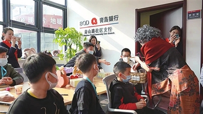 “走进银行,才知道这里是11支‘青岛银行幸福邻里’社区志愿服务小分队之一。”嘉定路小学段懿宸看到,在网点厅堂内,悬挂着“敬老、爱老志愿服务九宫格”,在这里不仅可以办理银行业务,更能帮助周边社区的老人做社保咨询,办理充值老年乘车卡、预约医院挂号等便民服务。据工作人员介绍,当下,银行网点办理业务的很多是中老年人,如何服务好老年客户群体,满足老年客户群体日益增长的金融服务需求,已经成为银行迫切需要解决的问题。针对老年人办理银行业务的难点、痛点,青岛银行开启“银发服务”青银模式,“温馨+精准”关爱老人群体。