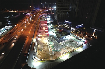 由中铁十四局承建的瑞昌路站总长度为224米,宽度为20.3米,为地下两层车站,采用明挖法施工,附近有瑞昌路高架桥、胶济铁路营运线及铁建中心在建楼盘,周边环境复杂,呈现铁路、高架、轨道交通“三轨交汇”的特点。