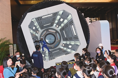 展示“影视之都”的数字强项,青岛海好影视传媒有限公司展出了“空间站世界之窗”。曾为《流浪地球》系列以及《我和我的祖国》《疯狂外星人》《悬崖之上》等大片提供过优质服务的该公司,本次展示的“空间站”是为了满足科幻片的特殊拍摄而做的空间,场景旋转结合舷窗外影像制造出空间站失重状态的影像,是硬科幻场景工业化置景的体现。