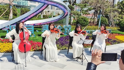 “遇见·秦岭路”市集结合现代年轻人网红打卡偏好,通过多元化互动形式的融合,凸显街区未来时尚潮流的生活方式,吸引参与者驻足、体验。在这里,热爱生活的人认真布置摊位、准备物品,只为以完美的方式呈现自己的“宝贝”;擅长艺术的人将精心制作的创意手作带到海边;热爱手工的人化身市集网红摊主,带来了奇趣好物;还有精心制作的手工甜点与咖啡。市集现场有户外音乐会、乐队驻场、卡通巡游、古典音乐会等,可以让市民和着街角乐队演奏的音乐声轻松逛市集,亲密交谈,一场创意市集,也是一场轻松愉快的街区聚会。
