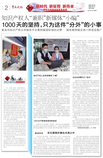 知识产权人“兼职”新媒体“小编”~~~青岛市知识产权公共服务平台案例被国际组织点赞 服务案例被全球八种语言推广