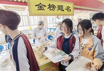 本报4月20日讯 以优质食材烹饪数十种特色小吃,用鲜香美味征服学生味蕾。4月20日下午,青岛68中首届美食节在学校三楼食堂开幕。花式甜点、腊汁肉夹馍、淄博烧烤、香甜奶茶、新疆烤馕、麻辣小龙虾……汇聚各种风味的近50种特色小吃琳琅满目摆满展台,学生们在标注着“高分宝点”“逢考必过”“甜蜜蜜”等祝福语的展台前挑选喜爱的美食,学校以打动学生味蕾为基础,在保障营养均衡的前提下,为考生高考助力。