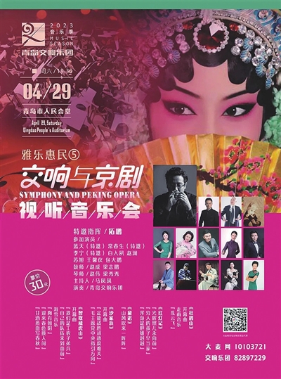 4月29日,青岛交响乐团雅乐惠民音乐会将上演《“交响与京剧”视听音乐会》。《杜鹃山》《红灯记》《黛诺》《沙家浜》《智取威虎山》等选段将在人民会堂奏响。