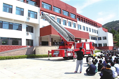 本报5月12日讯 为做好“防灾减灾日”宣传活动,切实增强校园防灾减灾意识,5月12日,崂山区消防救援大队走进崂山区第三中学开展“防灾减灾日”逃生演练及培训。