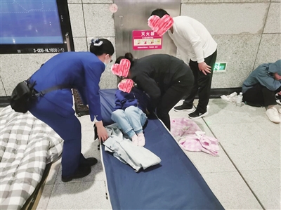 凌晨时分,在地铁青岛北站,部分乘客因赶早班火车,在地铁站厅、出入口外临时等候,车站员工自发将站外旅客引导至站厅开放区域避寒,并为乘客提供热水、姜茶、休息座椅;看到小朋友因疲劳而睡着,车站工作人员热心地搬来折叠床供小朋友临时休息,用真情守护旅客离青的最后一程。结合长途出行乘客多的特点,地铁青岛北站发起“绿波纾困行”志愿项目,在站厅设置休息等候区,提供桌椅、热水等必需品,供接站、候车乘客短暂休息,目前已推广至各交通枢纽站。