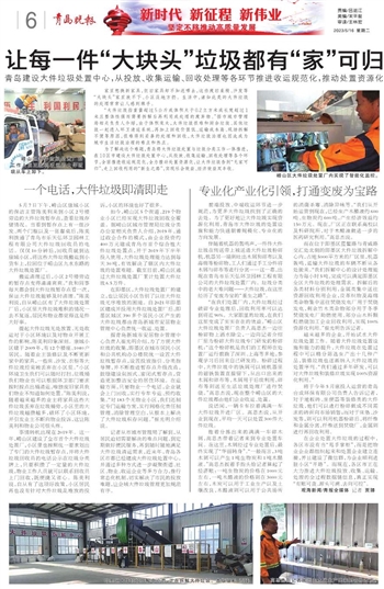~~~青岛建设大件垃圾处置中心,从投放、收集运输、回收处理等各环节推进收运规范化,推动处置资源化