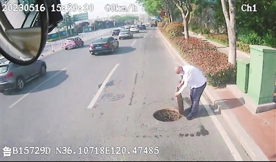 本报5月17日讯 16日,382路驾驶员车新正驾车行驶至崂山区朱家洼附近时,发现马路中央的古力井敞着口,现场也没有任何警示标志,没有施工作业人员,如果不及时盖好,过往车辆很容易发生危险。车新正将车停靠在安全地带后,立即走了过去,徒手将移位的井盖挪回原处,压实后才返回车厢继续执行营运任务。车厢上的乘客看到车新正的义举后,纷纷为他竖起了大拇指。