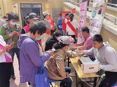 志愿者摆摊为居民服务