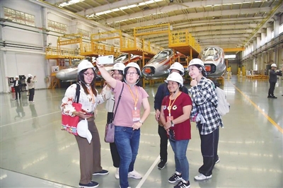 “走读中国”中外网络媒体记者一行当天上午还参观了中车青岛四方机车车辆股份有限公司,并参观了非遗文化展览。既见证了新时代中国的发展“速度”,同时又感受到了中国文化博大精深的“厚度”。此前一天,他们还探访了东方影都,并夜观浮山湾。