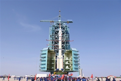 5月22日,神舟十六号载人飞船与长征二号F遥十六运载火箭组合体转运至发射塔架。