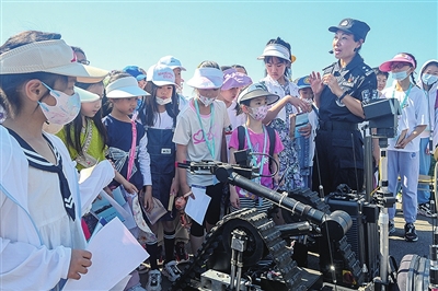 “特警叔叔们日常在烈日下汗流浃背地训练,所以皮肤都是古铜色的。这次活动让我受益匪浅,了解了特警叔叔们的装备,观看了特警叔叔们的表演,还摸到了真枪,真的是太酷啦!”青岛金门路小学的邓鹤言表示,他明白了一个道理,特警叔叔们的各种本领都是勤学苦练得来的,“宝剑锋从磨砺出,梅花香自苦寒来”,在平时的生活和学习中,也要多学多练,才能有所收获。