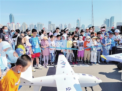 初夏的奥帆中心,景色如画,游人如织,美丽的海边环境与帅气的特警车辆、硬核的特警装备浪漫邂逅。活动随着两架警用无人机的相伴升空,在小记者们的期待中拉开帷幕。两架警用无人机分别挂载国旗和警旗,在活动入口处悬停,国旗飘扬,警旗猎猎,既是方向的指引,也是无声的誓言。