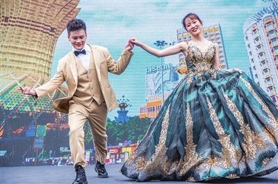 青岛澳门周大型路展活动现场,参展方均推出多重好礼。其中,澳娱综合度假股份有限公司(以下简称“澳娱综合”)的展位采用澳门上葡京综合度假村(上葡京)的花园主题风格,向青岛市民和游客展示旗下度假村和酒店的多元设施,同时推出多重优惠礼遇。澳娱综合吉祥公鸡“森仔”也闪亮登场,派发纪念品。澳娱综合还将在会场主舞台为观众呈献“成双成对 终成眷属”婚纱舞演出,展现其华丽的婚宴场地——上葡京礼堂。