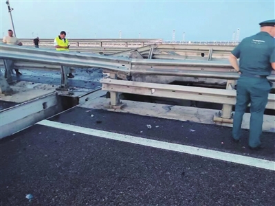 塔斯社援引俄交通部消息报道说,克里米亚大桥桥墩没有受损,靠近克里米亚半岛一侧的大桥路面遭破坏。
