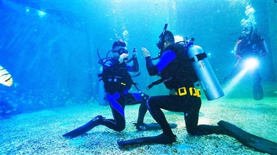 潜水,是救援人员必须掌握的新技能。“在水下救援时,经常会翻起沙土和淤泥,混在水里容易混淆视线。”救援人员告诉记者,他们之前在极地海洋世界的深水池中进行过训练:在一片200平方米的水池里,教员扔下去一个螺丝钉大小的目标物,要求救援人员在10分钟之内找到它……
