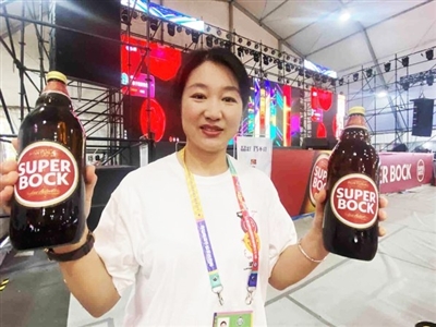 原来,超级波克啤酒品牌始于1927年,至今已有近百年历史,是葡萄牙的国民啤酒。超级波克啤酒属于拉格类型啤酒,低温发酵和熟成使其具有清爽口感和纯净度。与其他类型啤酒相比,拉格啤酒通常更加易饮,适合广泛的消费者群体。其经典黄啤,在有食品界诺贝尔奖之称的“世界食品品质评鉴大会(MONDE SELECTION)”上,连续获得了40枚品质金牌(截至2023年4月)。“200毫升的瓶装酒和常规酒不同,我们是用拉环开启的,像打开易拉罐一样,打开即可饮用。”刘晶说着便打开了一瓶超级波克拉环冒险啤酒,只能听见“嘣”一声,啤酒打开了,即可便能畅饮。每天,刘晶都会让大篷工作人员带着啤酒,给市民游客品尝,“喜欢超级波克啤酒,可以到大篷继续品鉴,我们欢迎更多人了解这个啤酒品牌。”刘晶介绍,大篷可提供13种超级波克啤酒,全部从葡萄牙原装进口。超级波克啤酒的度数比较高,基本在4.8度以上,“因为有优质的水源和进口大麦,所以超级波克啤酒有着非常过硬的品质,这也让我们更有信心引进这一啤酒品牌。”