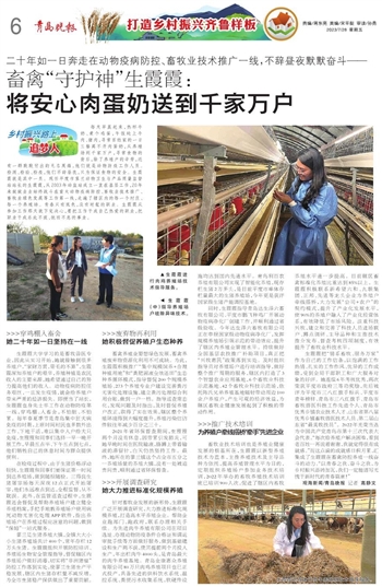 每天早晨起来,热杯牛奶、煮个鸡蛋,午饭炖上牛肉、猪肉,寻常百姓家的一日三餐离不开肉蛋奶,从养殖场到千家万户,寻常食物的背后,除了养殖户的辛劳,还有一群默默付出的无名英雄,他们就是动物防疫工作人员。检测、检验、检疫,他们不辞昼夜,只为保证食物的安全。生霞霞就是其中一员。现任平度市蓼兰动物卫生与产品质量监督站站长的生霞霞,从2003年动监站成立一直在基层工作,20年来兢兢业业始终战斗在重大动物疫病防控、畜牧业技术推广、畜牧业绿色发展等工作第一线,走遍了辖区内的每一个村庄、每一个养殖场。青春只有底色,没有时髦的职业。生霞霞从参加工作那天就下定决心,要把工作干成自己热爱的职业,把职业干成乐此不疲、驰而不息的事业。