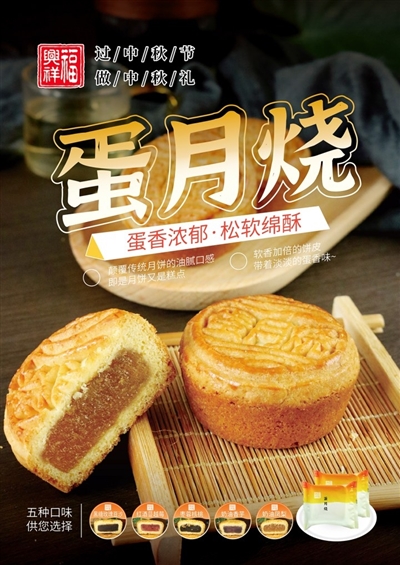 福兴祥月饼是由福昌食品烘焙车间研发生产,今年是第一年面向消费者,中秋节期间,福兴祥月饼主要生产7个类别40余款月饼和部分礼盒产品,除了传统的广式、苏式月饼,还有网红蛋月烧月饼,西式的法式月饼,炭烧月饼,四重馅的流心月饼,口味上除了五仁、椰蓉、黑芝麻、红豆、栗蓉、蛋黄等传统口味还有红酒蔓越莓、巧克力榛子以及年轻人喜欢的树莓、蓝莓、蛋黄肉松、凤梨等口味月饼,另外还推出了低油低糖的健康营养的月饼,以满足不同需求的消费者。