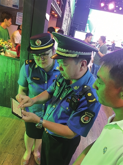 “我是崂山区综合行政执法局工作人员,请出示演出经营许可证。”刘振斌来到一家啤酒大篷前台查看该经营场所文艺演出审批手续。“执法局前期筛查,这家啤酒大篷没有文艺演出审批手续,该啤酒大篷是招商进驻的,对政策法规不是很了解,我们根据相关法规对其进行了约谈。”刘振斌告诉记者,约谈不是目的,在了解到经营业主的实际情况后,执法局帮助联系崂山区相关审批部门,指导具体审批流程,快审快办,帮助经营业主取得营业资格,不耽误正常营业。