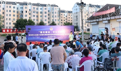 本报7月30日讯 7月26日晚,胶州市公安局金盾志愿服务队来到铺集镇铺上五村,举办“警民情深 平安共建”大型警务展演暨防电诈金盾志愿主题宣讲活动,现场热闹非凡,笑声不断。本次活动是胶州市公安局反诈主题宣讲系列巡演活动第五站。