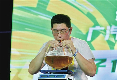 第一项“吹得响亮”开始,随着裁判一声令下,任光超举起酒瓶,将啤酒瓶倒灌在嘴中,观众还没反应过来,啤酒瓶就已被他用力放在计时器的案台上,显示屏显示3.63秒。“剩余酒不超过50毫升,成绩有效!”伴随着裁判的宣判,现场发出阵阵欢呼。在“一气喝成”(1500ml速饮)比赛中,任光超依旧发挥稳定,裁判一声令下,任光超将一大扎酒一饮而尽,裁判公布最终成绩为8.19秒。最后的一分钟速饮项目中,任光超喝掉了3300毫升。