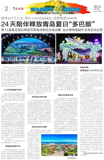 接待617万人次,举办1110余场演出,消费啤酒2700吨~~~第33届青岛国际啤酒节西海岸新区会场闭幕 金沙滩啤酒城开启常态化运营