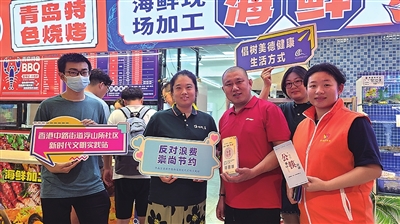 青岛还根据不同季节特点,精准开展“文明餐桌”宣传教育活动。如针对当前旅游旺季,市南区香港中路街道在浮山所海鲜市场、云霄路闽江路、太古广场等餐饮密集区域开展“文明餐桌”宣传活动,联合市场管理部门向商户开展诚信经营、食品安全宣传,提醒商户们营造良好市场秩序。社区网格员和志愿者也积极参与其中,向就餐顾客宣传点餐适量、“光盘行动”。“市场周边有不少新开的啤酒屋,人气很旺,我们经常会面向这些‘新商户’。”香港中路街道工作人员李晓说。