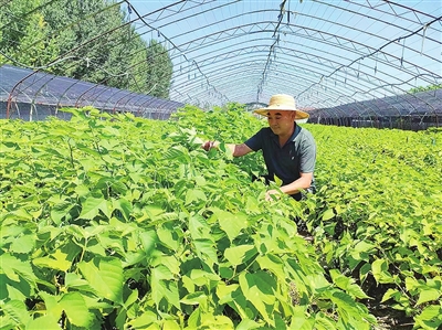 “太空构树种植效益非常好,我们引植成功后,便开始培育树苗,每年至少有300余万株构树苗销往全国各地。”赵世国说,构树还具有生长速度快,耐干旱、耐贫瘠、耐盐碱等特点,适应性广。每年采摘树叶4到6次,第一年每亩可产4吨鲜枝鲜叶,第二年后,每年每亩可产8吨鲜枝鲜叶,而且其蛋白质含量极高,是一种很有发展前景的木本饲料植物。目前,杂交构树组培繁育、试验示范等方面技术已取得突破性成果,每年约有300万株构树苗销往新疆、云南、安徽、宁夏等10个省市。