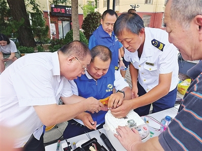 上午8时30分,志愿者如约来到活动现场,随即开始紧张准备:摆放好桌椅、台式砂轮机、磨刀石等物品。闻讯赶来的居民早早排着队,等待志愿者提供免费磨刀磨剪子、爱心理发、维修小家电等便民服务。
