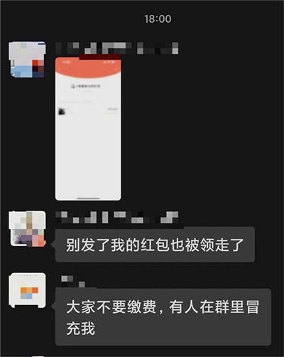在其发红包后,家长们随即往群里发红包交费,其间,“老师”通过分享群二维码的方式,还邀请了多人进群。就在“骗子”忙不迭收红包时,有家长发现了不对劲:微信名“1”的人竟然也在收取自己发给“老师”的红包。随即有其他家长反映,自己发的红包也被别人领走了。就在这时,真正的班主任现身了,随即迅速提醒广大家长不要发红包,称有一名和自己名称、头像一样的人在冒充自己。此时,已有30名家长发送了红包,总金额近6000元。发现真正的班主任现身后,这些“骗子”陆续退出了群聊。这时,大家才反应过来,自己遭遇了一场骗局。那些查看群消息不及时或发红包较慢的家长,则“幸运”躲过了被骗。