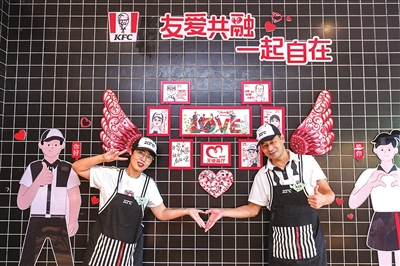 位于香港中路麦凯乐一楼的肯德基餐厅是青岛最繁忙的肯德基餐厅之一,它也是青岛唯一一家肯德基天使餐厅,餐厅服务人员中,有五位是残障人士,他们没有向生活屈服。在这里,他们像普通员工一样在各自的岗位上尽职尽责,用双手创造美好生活。