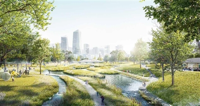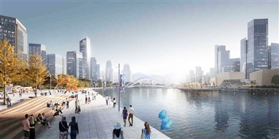 打造世界级城市滨水公共开放活力水岸空间,项目以河道景观提升为切入点,以水城一体为目标,项目通过核心区大水面的建设,形成城市的核心滨水空间,为人们提供文化交流、商务会谈、科普教育、休闲娱乐的世界级活力水岸空间场所。
