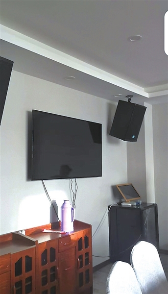 记者来到2楼看到,大厅里摆放着专业的音响设备,而且每个包间内都有专业的KTV设备,音箱挂在天花板上。工作人员表示老板王经理目前在老家,记者随即打通了王经理电话,对方承诺会采取措施,把挂在天花板上的音箱拆下来、话筒和音箱接线方面重新设置,保证控制音量,不再影响周围邻居日常生活起居。后续酒店噪音是否整改到位,本报将持续关注。 (观海新闻/青岛晚报/掌上青岛 记者 雷林)