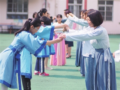学校将阅读融汇于各类教育实践,深化阅读体验、深入阅读探究。以“书香流韵”为主题的阅读市集、图书漂流活动让学生将自己喜爱的图书以互换交流的形式进行漂流传递,让更多好书得以分享:戏剧展演,让书中故事鲜活起来;古文吟唱,让平平仄仄“声”入人心。