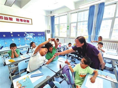 “暑假时接到人事调整通知,马上就和几名同事来学校报到了。”初中骨干教师教小学是一种什么感受?已经跟小学生磨合了两周有余的徐怡感慨颇深。“教初中生要直面中考,注重思维模式的培养,对学习要进行深层次引领;而教小学生则更注重基础知识的夯实、综合素质能力和行为习惯的培养。”在她看来,初中、小学的上课方式、重点工作方向、管理模式等都存在很大差异。“虽然刚在小学工作了两个多周,但收获还是很大的。”徐怡说,执教小学让她更深入地了解了孩子们的学习内容、深度和广度,有助于她回到初中后在教学中更好地帮助孩子们完成小初衔接学习。