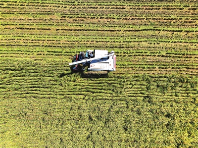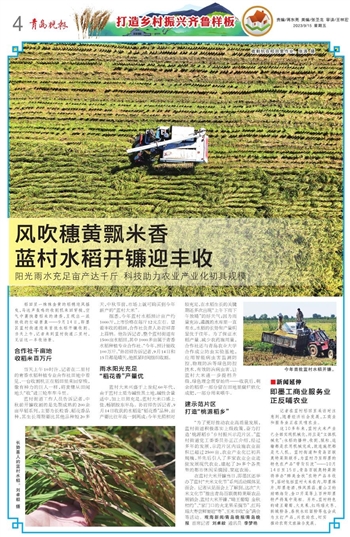 蓝村大米兴盛于上世纪60年代,由于蓝村土质为碱性黑土地,碱性含量适中,加上日照充足,蓝村大米口感上佳,畅销胶东半岛。孙岩祥告诉记者,9月14日收获的水稻是“稻花香”品种,亩产要比往年高一到两成:今年光照相对较充足,在水稻生长的关键期还多次出现“上午下雨下午放晴”的好天气;因为雨量充沛,灌溉的水库里一直有水,水稻的长势和产量明显优于往年。为了保证水稻产量、减少农药施用量,合作社还与青岛农业大学合作成立防虫实验基地,应用智能病虫害监测防控、物理防治等绿色防控技术,有效防治病虫害,让蓝村大米进一步提档升级,绿色理念贯穿始终——收获后,剩余的稻草一部分留在田地里腐烂软化成肥,一部分用来喂牛。
